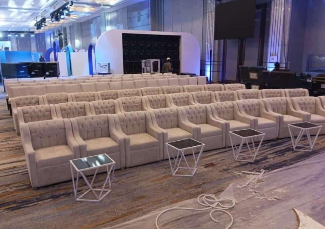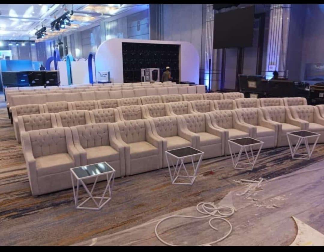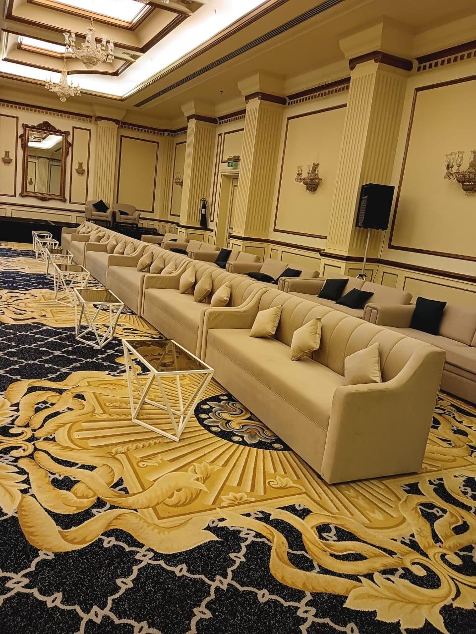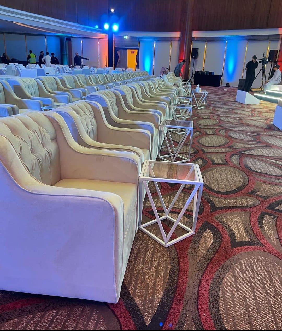 من الأرائك والكراسي والطاولات والستائر الأنيقة للحفلات والمناسبات إلى الأثاث المكتبي وحواجز البنوك، نحن نلبي جميع احتياجات مناسباتك.