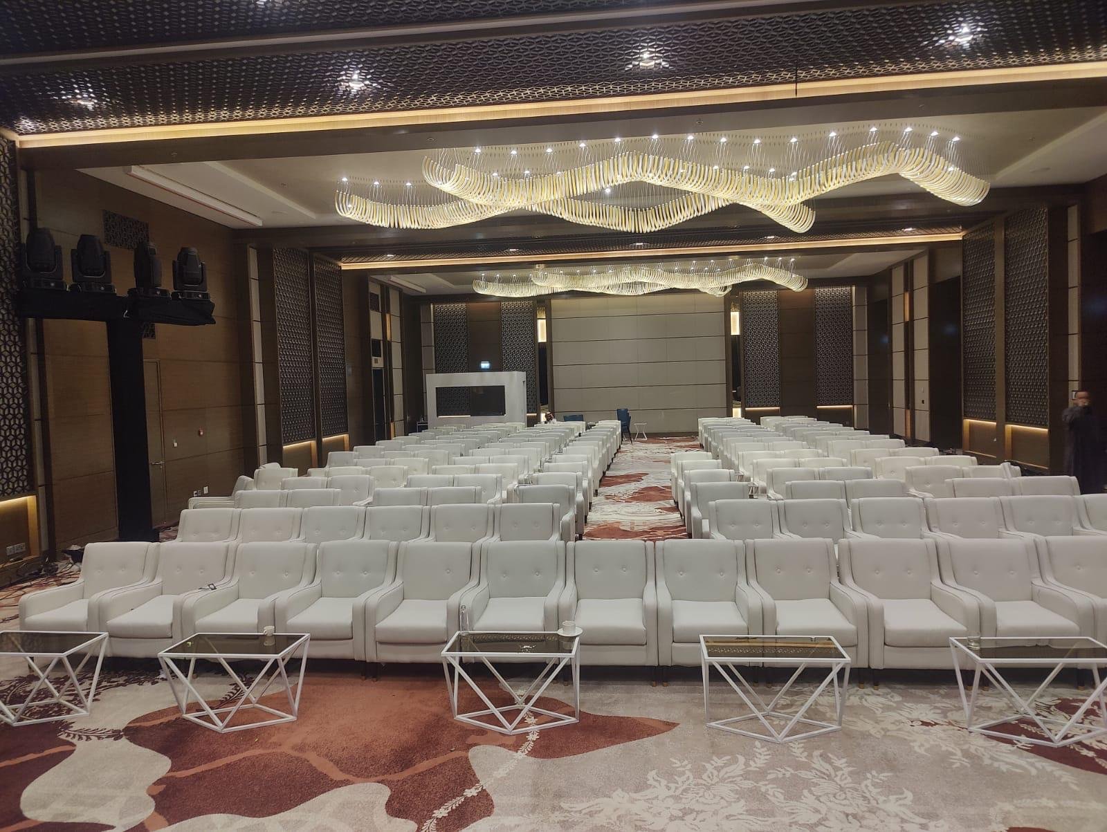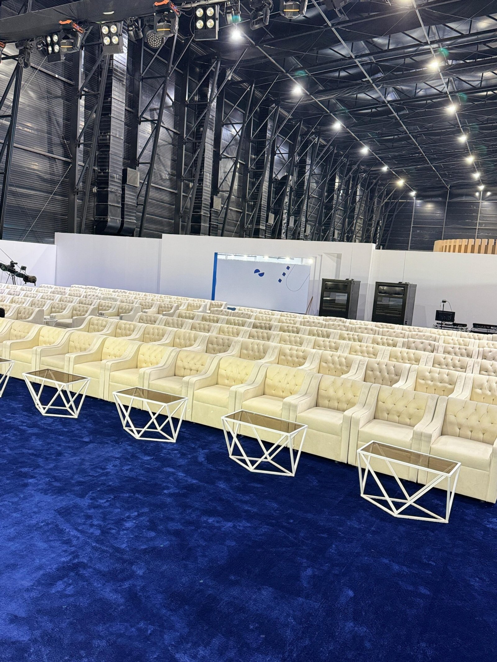 سيعمل فريقنا معك لتصميم الأثاث والمعدات بما يتناسب مع موضوع الحدث الخاص بك. نحن نضمن أن كل التفاصيل، بدءًا من الجلسات والمحادثات وحتى ترتيبات المتحدثين، تتماشى تمامًا مع رؤيتك.