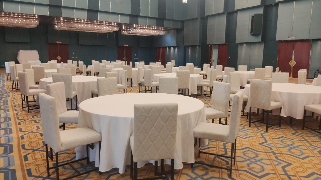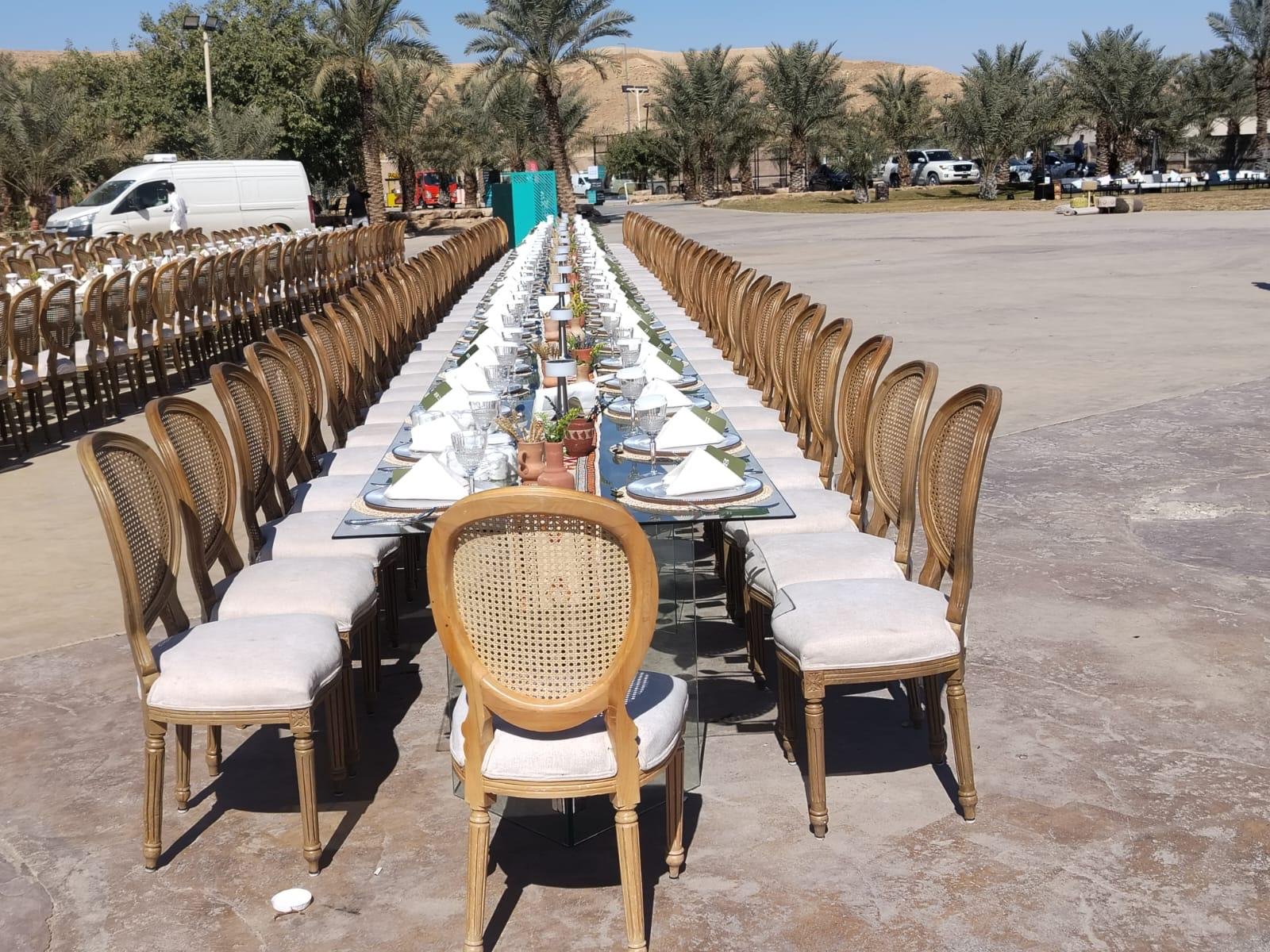 نحن نقدم أثاثًا ومعدات من الدرجة الأولى مصممة لتوفير الراحة والأناقة والمتانة، مما يضمن أن تكون مناسباتك عملية وجذابة بصريًا.